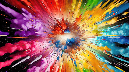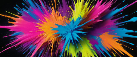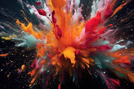 Vibrant colorful paint explosion against a dark background