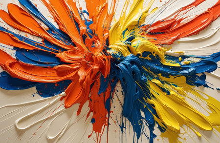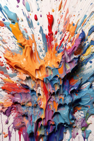 Vibrant abstract artwork showcasing dynamic paint splashes against a subtle neutral backdrop