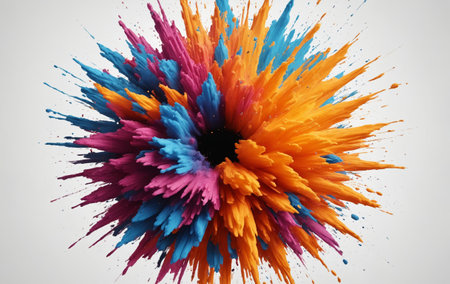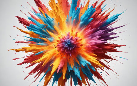 Vibrant paint explosion on white background, colorful abstract design