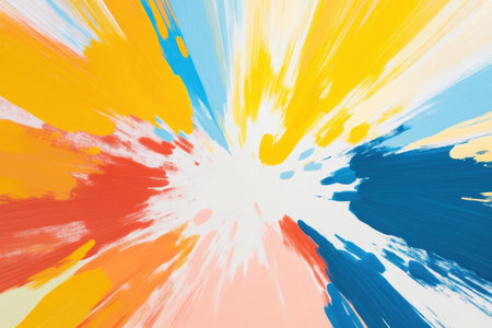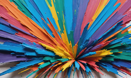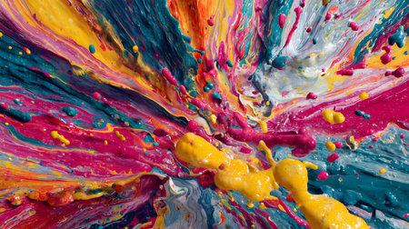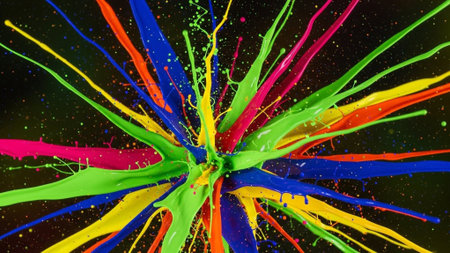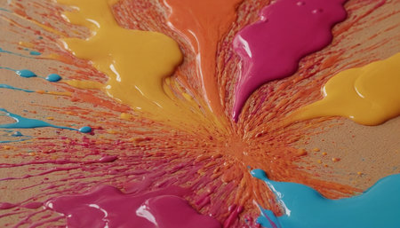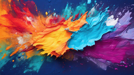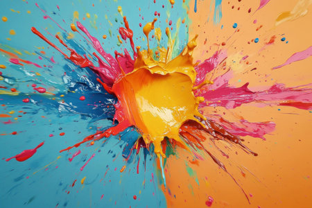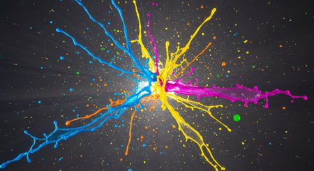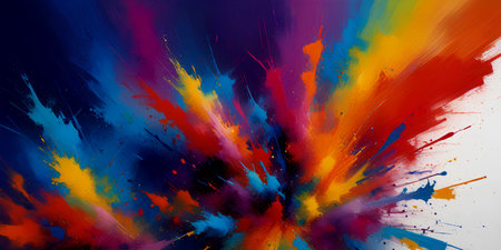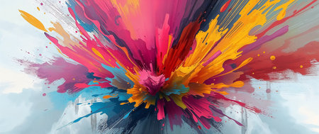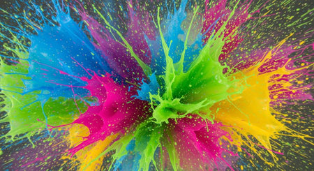 Vibrant explosion of colorful paint splashes creating an artistic abstract background, showcasing a burst of energy in bright hues, perfect for creative projects