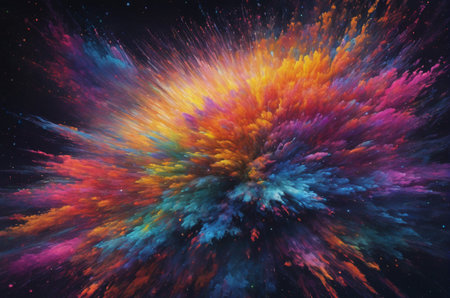 Colorful powder explosion, vibrant abstract design, cosmic background