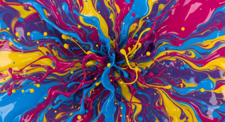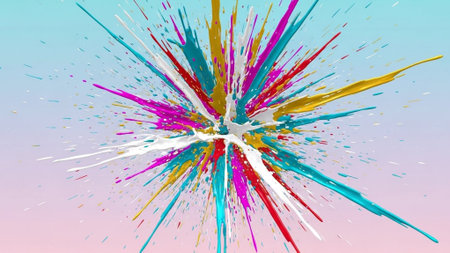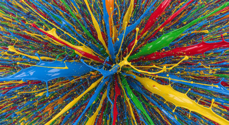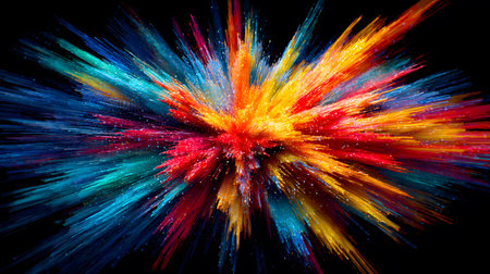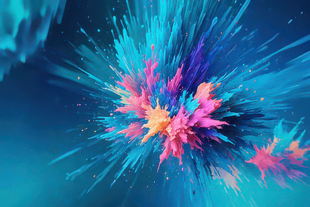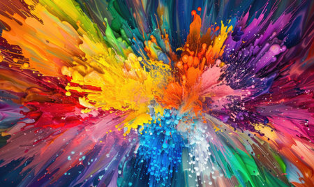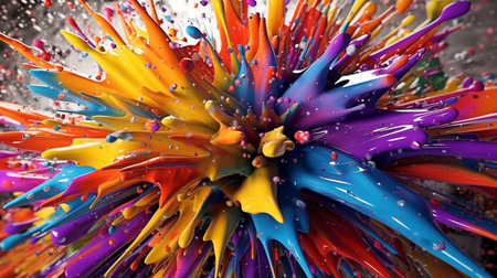 Colorful abstract explosion of vibrant paint splashes in motion