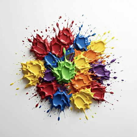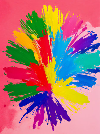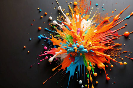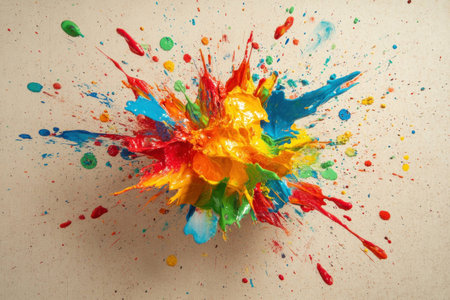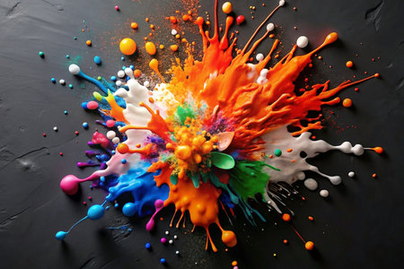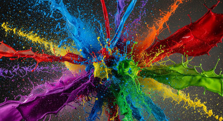 Colorful paint splashes create a vibrant explosion of hues celebrating creativity and artistic expression