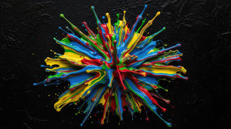 Colorful liquid paint explosion on dark background for art projects