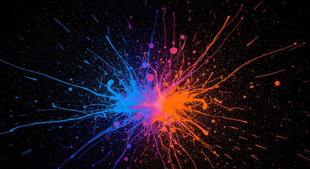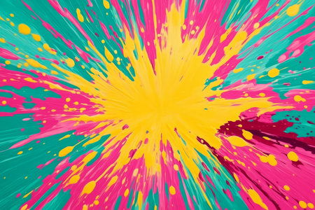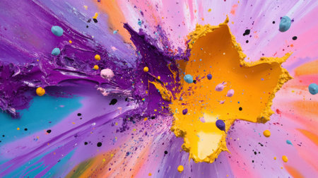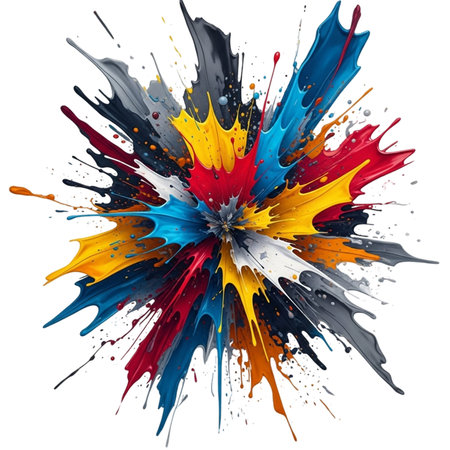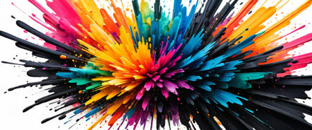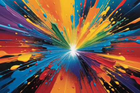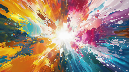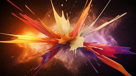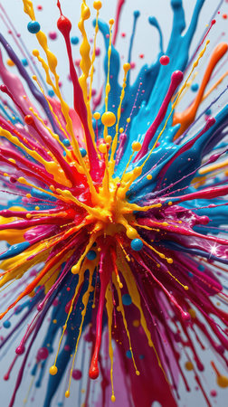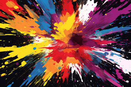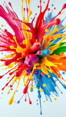 Explosion of vibrant paint splashes with abstract design elements