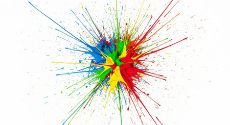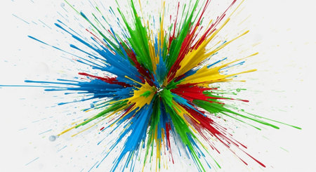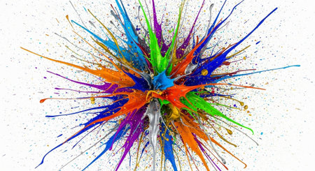 Explosion of vibrant paint splatters on a white background