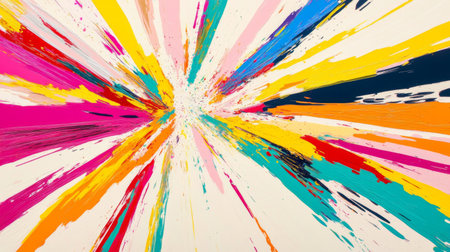Bright colors burst outward in a striking display, blending and contrasting in an expressive abstract design.
