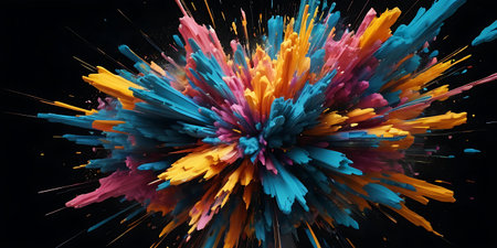 Abstract colorful explosion on black background. 3d illustration. By Generative AI.