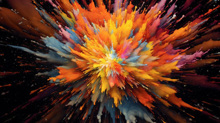Digital artwork abstract background of the burst of colorful paint colors. Generated AI.