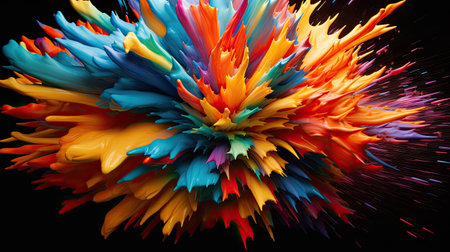 explosion of vibrant paint on black background, created with generative ai