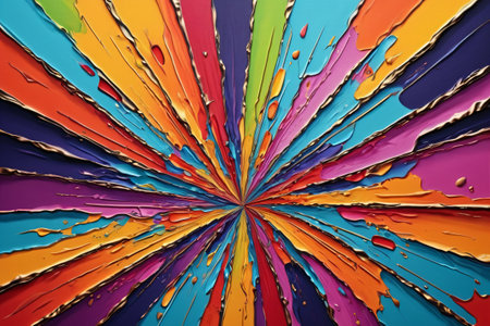 This vibrant abstract artwork features a dynamic explosion of colors radiating from a central point, creating a lively and energetic feel perfect for modern interiors.