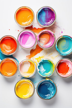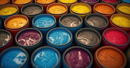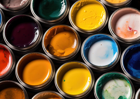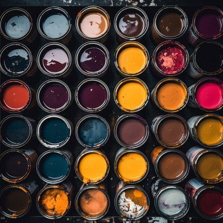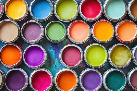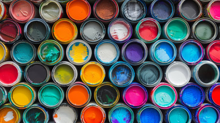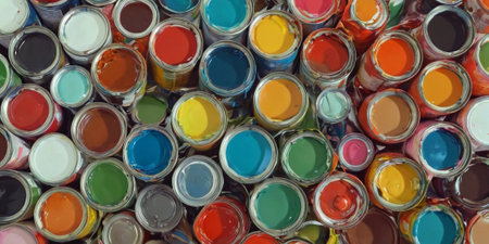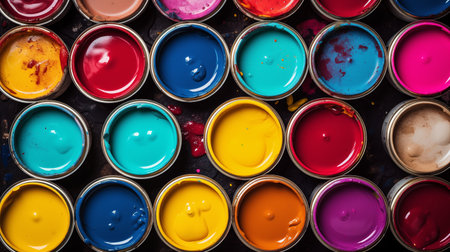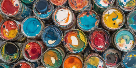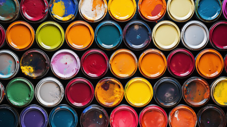 Colorful Array of Paint Cans Top View, Artistic Creativity and Home Improvement Concept, photograph