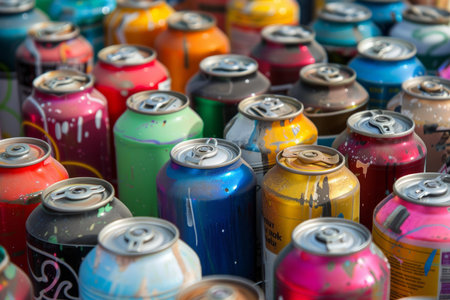 Vibrant collection of spray paint cans captured in a shallow depth of field