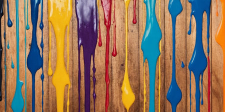 Colorful dripping paint on a wooden background. Abstract colorful background.