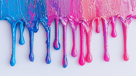 Abstract colorful paint drips in vibrant shades of blue, pink, and purple, creating a fluid art texture.