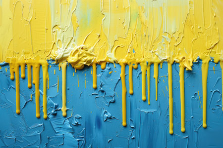 Strokes of yellow and blue paint abstract background. Copy space for text
