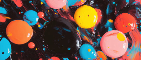 Colorful paint splashes isolated on black background. Abstract artistic background