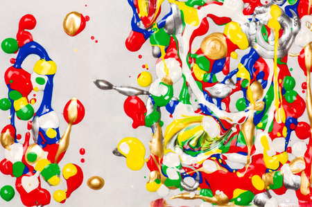 Abstract background of acrylic paint splashes in different colors and saturation studio