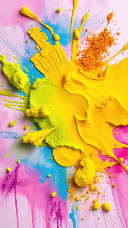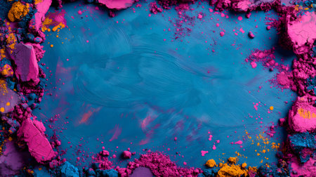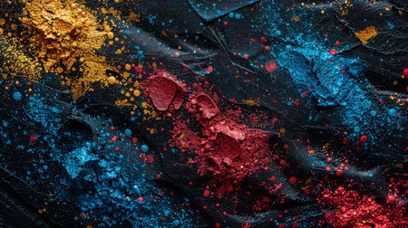 Beautiful blend of colorful powder particles scattered on a surface, creating a vibrant abstract art background, perfect for artistic or creative projects.