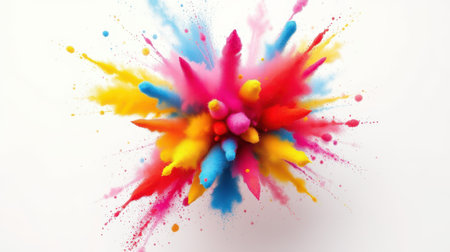 Colorful explosion of vibrant powdered pigments on a white background creates an abstract art effect
