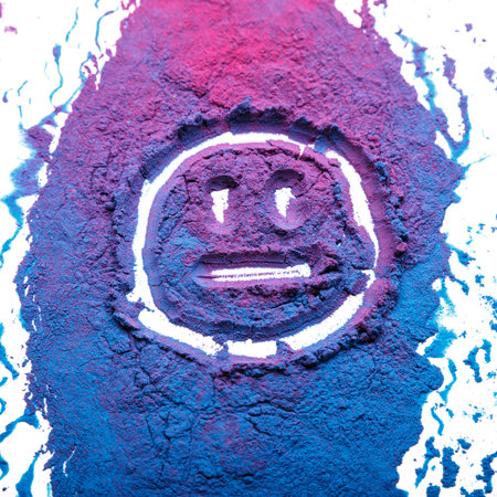 Bright colored powders blend together in a playful arrangement showing cheerful tones of blue pink and yellow.