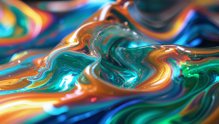 Abstract colorful paint mixing, swirling and flowing to create rainbow waves, perfect for backgrounds and creative projects