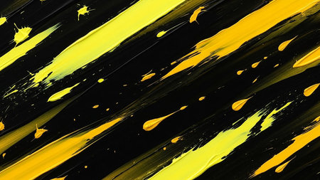 Vibrant Paint Strokes Abstract Artwork with Flowing Colors and Dynamic Shapes on Yellow Background