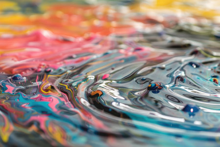 A colorful mixture of paint in a liquid form, creating an abstract composition. AI-generated.