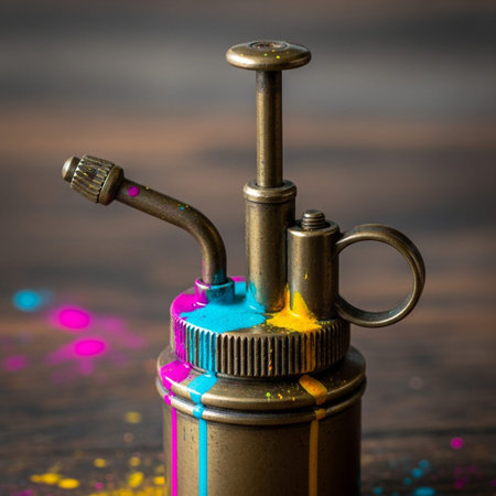 Dynamic spray nozzle unleashes a captivating flow of vibrant colors, creating a mesmerizing mix of artistic patterns perfect for creative inspirations.