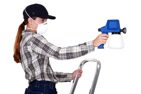 Woman wearing a mask to use a spraygun