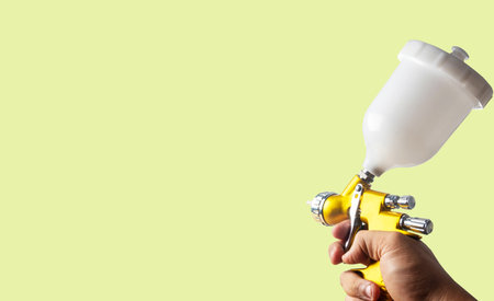 Manual and paint spray gun at work on background