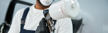 close up details of industrial worker, mechanic engineer painter painting a car