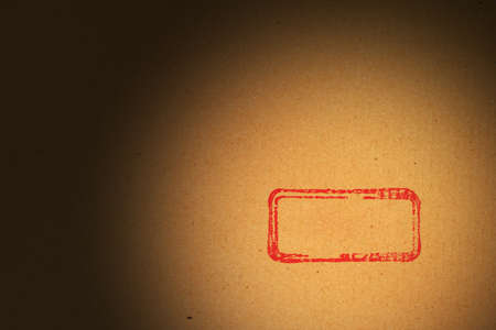 Low angle macro of clustered vintage red and magenta postage stamps with dramatic sunlight and shado