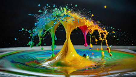 Highspeed capture of a dynamic paint splash showcasing a symphony of colors