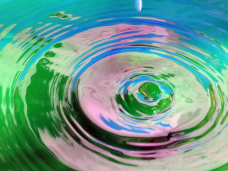 beautiful patterns on the surface of the multicolored liquid after the impact of a drop of water