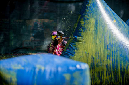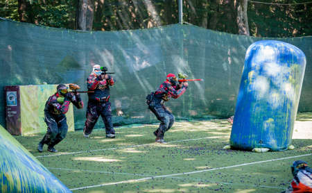 Russia. Stavopol. 07/27/2019 The 5th annual corporate tournament among young specialists of Gazprom employees. Paintball competitions on the sports field with unprofessional amateur teams.