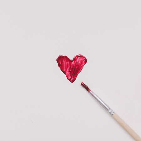 Heart symbol made of red brush strokes on white background. Valentines Day, Woman Day composition.