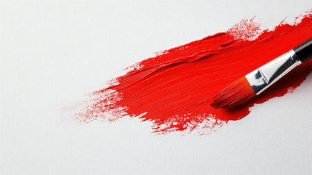 A red paintbrush stroke on a white canvas, showcasing the boldness and intensity of the red pigment