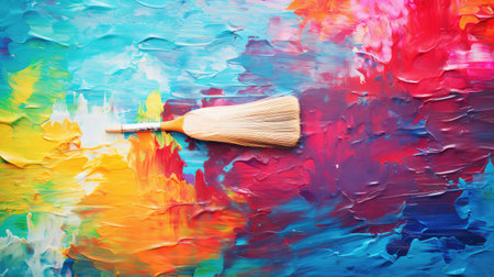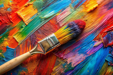 Colorful paintbrush on vibrant abstract art background
