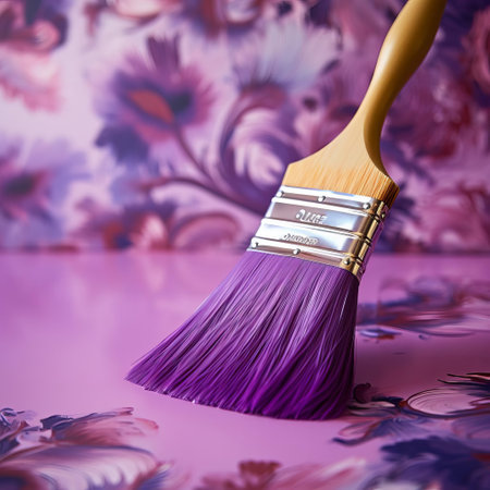 the brush cleaner, with its soft bristles and gentle touch, is specifically designed to remove dirt and grime from delicate wallpaper surfaces, particularly those featuring elegant violet hues, ensuring a fresh and vibrant appearance without damaging the paper. ai generated