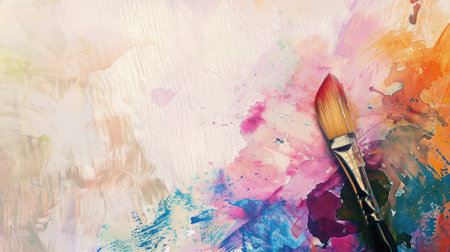 Paintbrush on colorful abstract painted canvas background