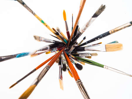 Brushes and spatulas on a white background. The tools of an artist or a sculptor for drawing. Creative professions, master classes.