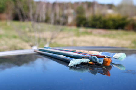 artist brushes set. instruments and tools for creative leisure. painting hobby