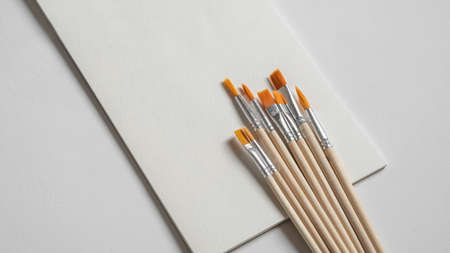 Brushes of different sizes on a white background. Artist's set. Artificial bristles. Preparation for work.