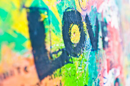 A fragment of colorful graffiti painted on a wall. Abstract urban background for design.