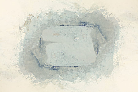 Old Color Grunge Painted Plaster Stucco Wall Vintage Weathered Frame With Abstract Antique Cracked Scratched Texture And Retro Pattern. Empty Space For Image Or Text. 3:2 Aspect Ratio