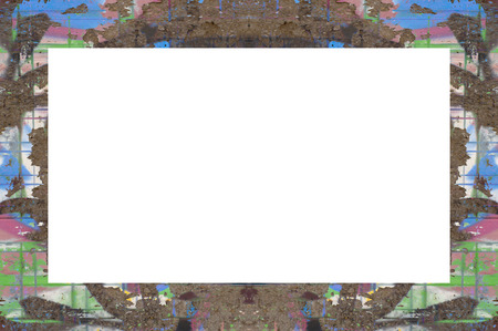 White empty frame with free copy space on white grunge brick wall. Grunge picture.