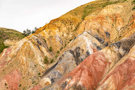 Martian landscapes of Kyzyl-Chin. Multicolored mountains near the village of Chagan-Uzun in the Kosh-Agach district of the Altai Republic. Russia, Southern Siberia