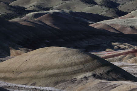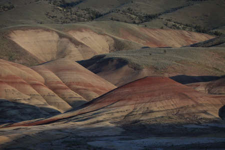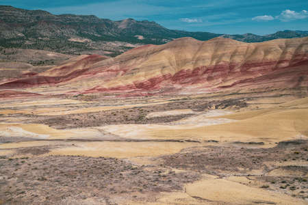 Painted Hills National Monument, in Mitchell Oregon, colorful layers show geological eras.