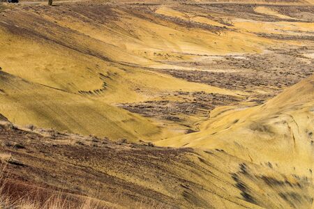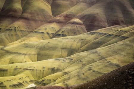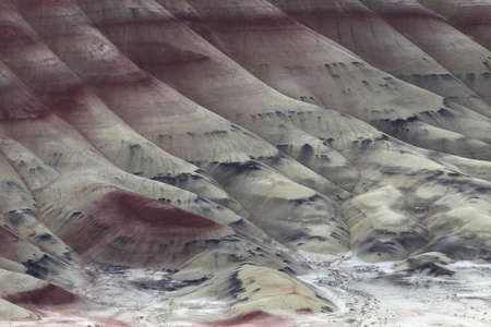 Detail of the arid, wavy and colorful landscape of Painted Hills